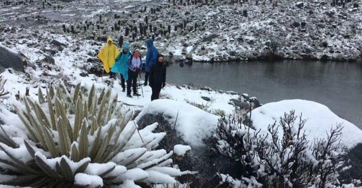 La temporada de lluvias en el Parque Nacional Natural El Cocuy ha enseñado a los visitantes una “cara” diferente del paisaje altoandino, en la foto las fuertes nevadas cubren parcialmente el páramo